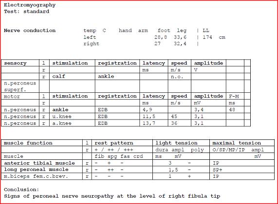 Conclusion: The dropfoot is due to a nerve compression at knee level.