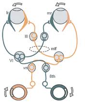 Assessment of extraocular motility showed an adduction deficit in the left eye. Horizontal nystagmus occurred in the right eye with extreme right gaze. Left internuclear ophthalmoplegia was diagnosed.